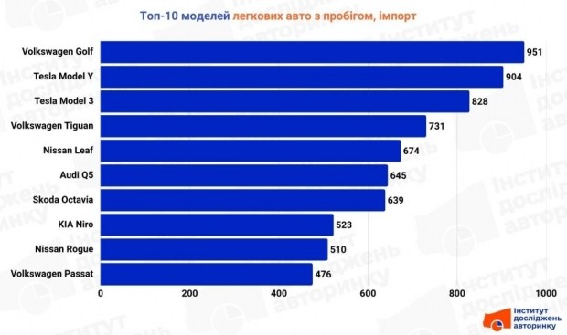 Серед окремих моделей Golf, Tiguan і Passat - це вже вічнозелені хіти, які впевнено тримають курс на Україну. А Tesla Model Y і Model 3, разом із Nissan Leaf та KIA Niro, виводять електричний сегмент на новий рівень - по об'єму вони вже впевнено конкурують із класичними ДВЗ-моделями.