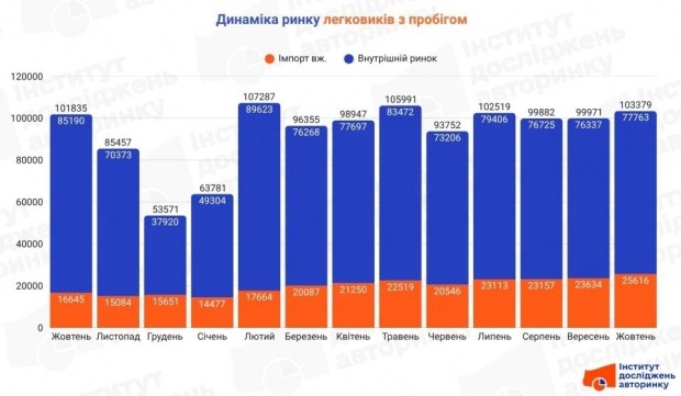 Привезених із-за кордону вживаних легкових машин у жовтні 2025 року на першу реєстрацію було подано 25,6 тисячі. Цей показник більший на 8,4% відносно результатів вересня поточного року, та на 53,9% більший у порівнянні з аналогічним періодом 2024 року.