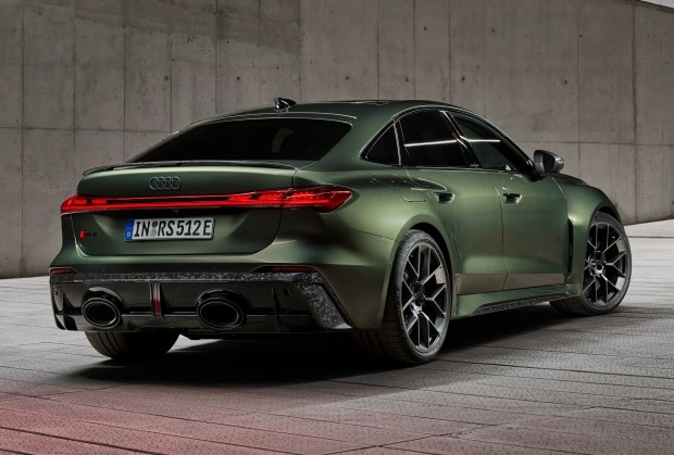 Стандартними є матричні фари та 20-дюймові диски, а ззаду видно дві широкі вихлопні труби.
