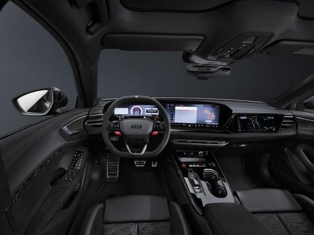 Салон Audi RS5 оздобили алькантарою з яскраво-червоними акцентами, а в якості опцій пропонують шкіру та карбон. Авто отримало спортивні крісла та кермо, а на передній панелі встановлено три екрани зі «зміненою» графікою для покращення візуального сприйняття зображення.