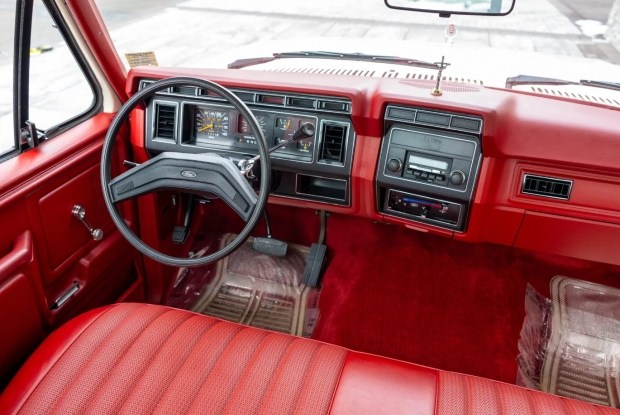 Інтер'єр - справжня капсула часу. Сидіння-«лавка» оздоблене яскраво-червоною вініловою оббивкою, у такому ж кольорі виконані дверні карти, передня панель і килимове покриття. Збережено оригінальне AM/FM-радіо, кондиціонер, гідропідсилювач керма та двоспицеве чорне кермо. Тут немає сенсорних екранів, складних меню чи цифрових панелей - лише перемикачі, механічні регулятори та відчуття епохи, коли пікап був простим і зрозумілим інструментом, а не багатофункціональним гаджетом.