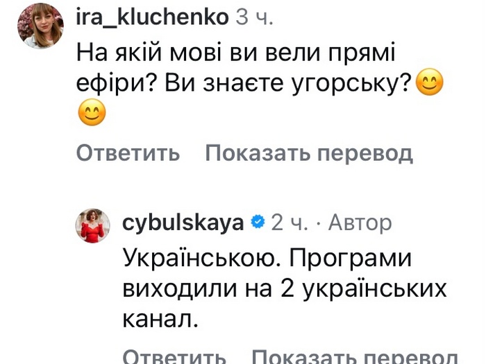 «Якою мовою ви вели прямі ефіри? — запитали співачку. — Ви знаєте угорську?»