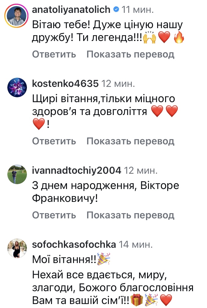 «Вікторе Франковичу, з Днем народження! — додали у мережі. — Многая літа, кохання безмежного, миру в Україні!»