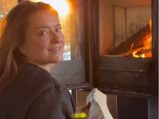Наталія показала світлини з маленького будинку, де провела кілька днів, насолоджуючись навколишніми краєвидами та самотужки розпалюючи камін.