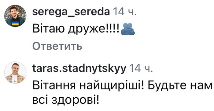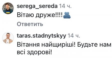 «Вітаю друже!» — приєднався комік Сергій Середа.