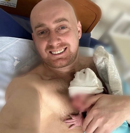 На своїй сторінці у соціальній мережі комік виклав світлини з пологового — з крихіткою на руках та дружиною.