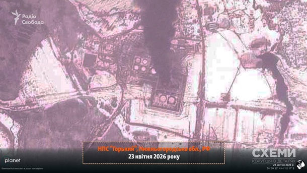 Спутниковая съемка свидетельствует, что на атакованной прошлой ночью российской нефтеперекачивающей станции Горький продолжается пожар. Спутниковое фото Planet Labs, сделанное вечером в четверг, 23 апреля, опубликовало Радио Свобода.