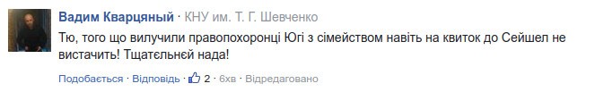 В комментариях к заявлению Климова один из пользователей обратил внимание на то, что изъятая у компании сумма значительно меньше той, которую Генеральный прокурор потратил на отдых на Сейшельских островах в начале этого года.