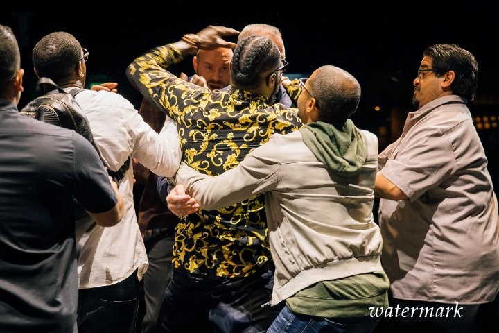 Во время заключительной пресс-конференции кипели страсти, и будущие соперники едва не подрались раньше времени, но вовремя вмешались секьюрити. Во время потасовки немного досталось менеджеру чемпиона - Шелли Финкелю.